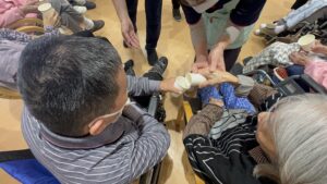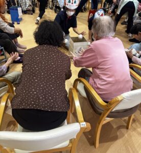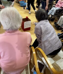 最初の種目は定番の玉入れ、次に盛り上がったのは紙コップリレーで皆さん一生懸命隣にボールを運んでいました😊